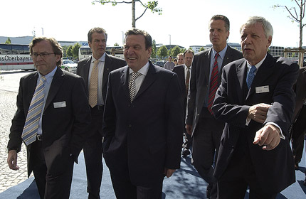 Einladung der RAG Aktiengesellschaft zu dem Führungskräfte-Incentive „Meeting of Directors 2004“. Der ehemalige Wirtschaftsminister und heutige Vorstandsvorsitzende Dr. Müller begrüßte gemeinsam mit Bundeskanzler Gerhard Schröder das Topmanagement der Holding. |